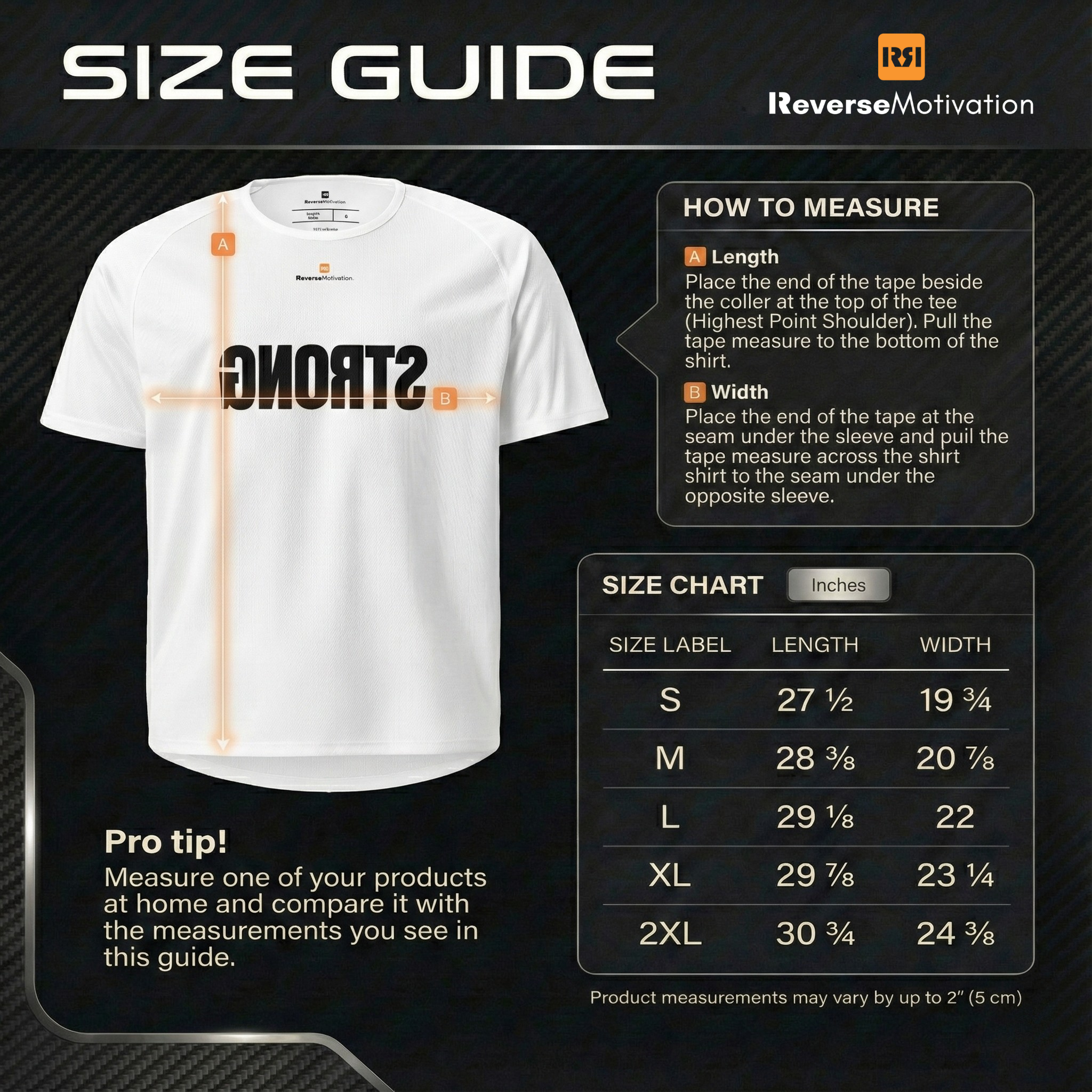 The STRONG Core performance tee is built for the moment you meet your eyes in the mirror. Its reversed print flips perfectly in your reflection, turning this motivational workout shirt into a steady reminder of who you are every time you train.